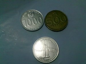 Walaupun udah lama diterbitkan,tapi baru kemaren dapet koin Rp 1,000 yang baru. Ukurannya hampir sama dengan koin Rp 500, dengan sisi depan bergambar angklung dan bagian belakang tulisan angka Rp 1,000.Wah ntar jangan2 klo gak keburu di-redoniminasi bisa-bisa ada koin Rp 10,000 ;p