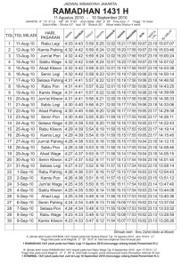 Alhamdulillah diberi kesempatan bertemu dengan bulan Ramadhan 1431 H,untuk semua nya semoga amal ibadah kita di bulan ini lancar dan diterima oleh Allah SWT. Agar ibadah kita lancar,berikut jadwal imsakiyah 1431 H untuk daerah Jakarta dan sekitarnya. Biar gak kelewatan waktu imsak dan jadwal sholat lainnya…Selamat beribadah 🙂